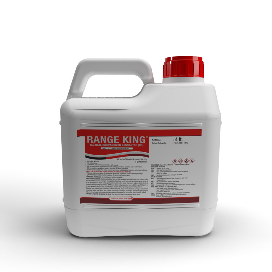 Abamectin, toprak mikroorganizması Streptomices avermitilis fermantasyonundan üretilen dogal olarak olusan makrosiklik bir laktondur ve hem insektisidal hem de akarasit özelliklere sahiptir. RANGE KING, Tetranychus urticae’ in merkezi sinir sistemi ile iliskili GABA reseptörlerine baglanarak, klor kanallarının açılmasını aktive eder. Abamectin klor kanallarındaki makrosiklik lakton baglama bölgelerine baglandıktan sonra, klor iyonları (Cl-) sinir hücrelerine giris yapar ve bu kanallar kapanamadıgı için merkezi sinir sisteminin sürekli olarak uyarılmasına ve felce yol açar. Böylece Tetranychus urticae’ in ölümü kaçınılmazdır.